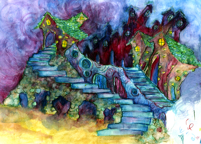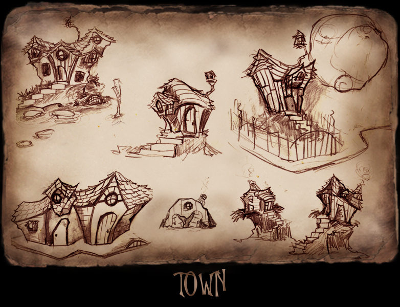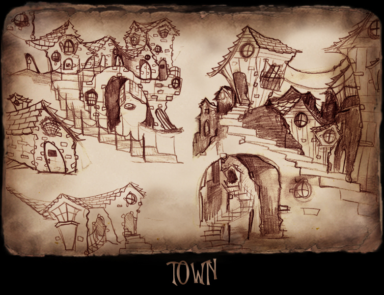 The environment designs were inspired by stylized medieval towns with a hint of swirly magic.